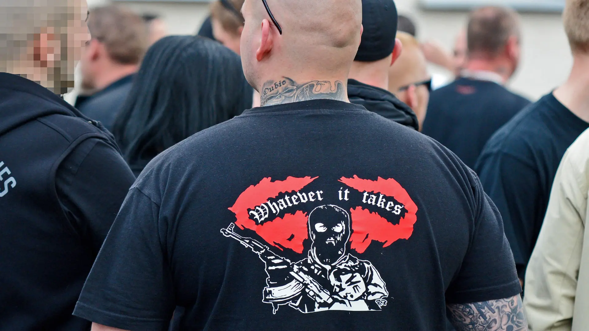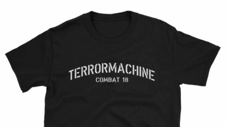 Both groups use a similar black-white-red logo in their imagery, often featuring a triskelion; Combat 18 often uses a Totenkopf in its imagery. Combat 18 propaganda often includes slogans like “Whatever it takes!” and “Terrormachine”.